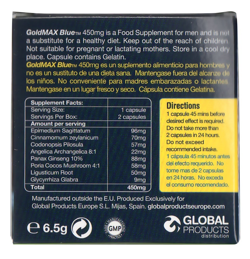 Gold Max Blue Enhancement Capsules 450mg-2 Capsules